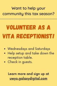 If you have questions about whether or not your return can be prepared by our program, please call (307) 464-VITA, option 3 and leave a message. A volunteer from our team will call you back.